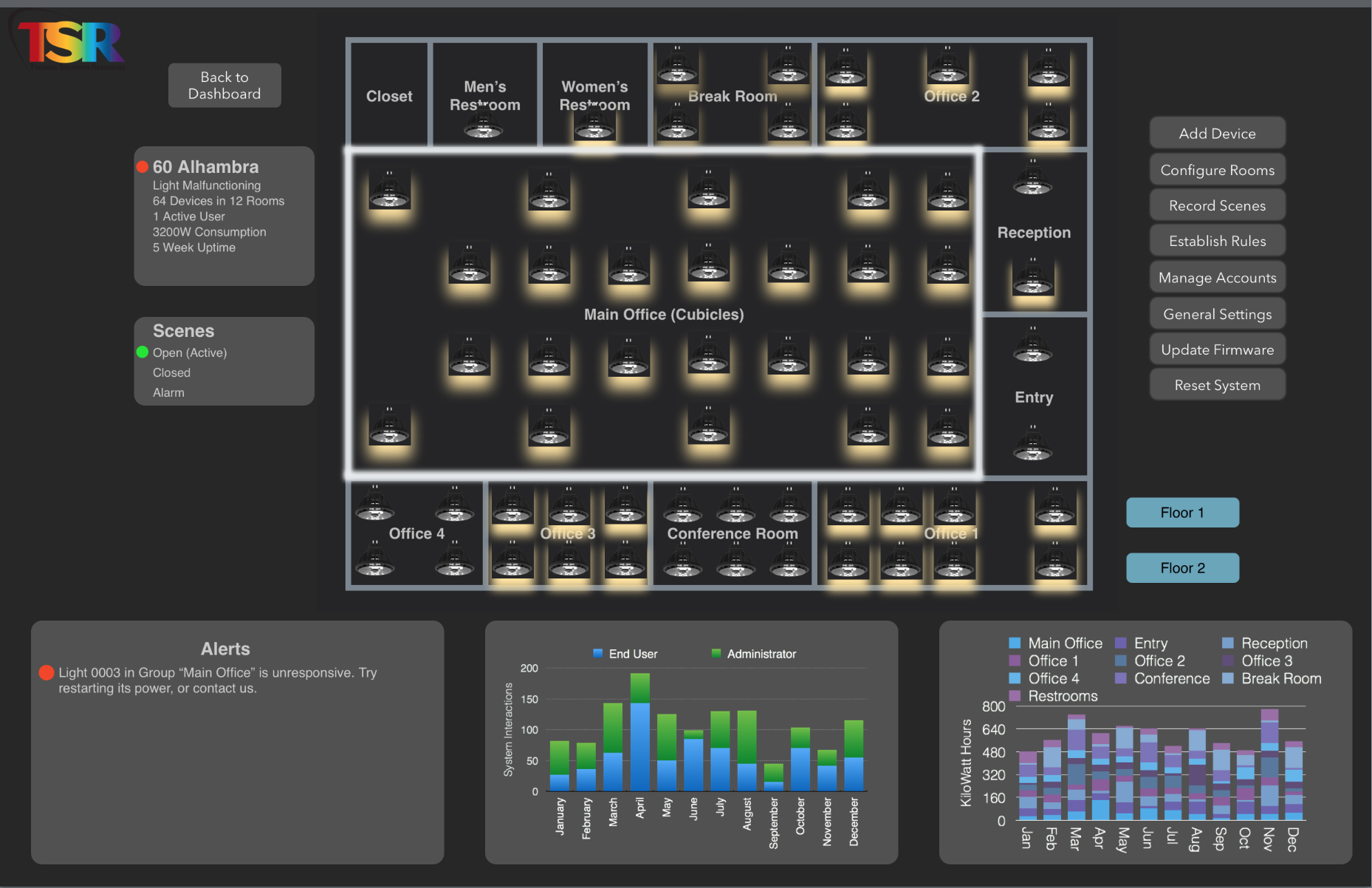 intelliSSL™ is TSR’s highly robust, scalable and configurable end-to-end lighting system solution enabled by the Internet of Things (IoT). Built upon a rock-solid, multi-protocol LAN mesh network, intelliSSL enables cloud (and local) control with best-in-class reliability. What’s more, intelliSSL can be configured to meet an application's specific needs, with highly configurable graphical user interfaces, multi-user and multi-site capabilities and a mobile application built for intuitive control of core lighting system functionality.